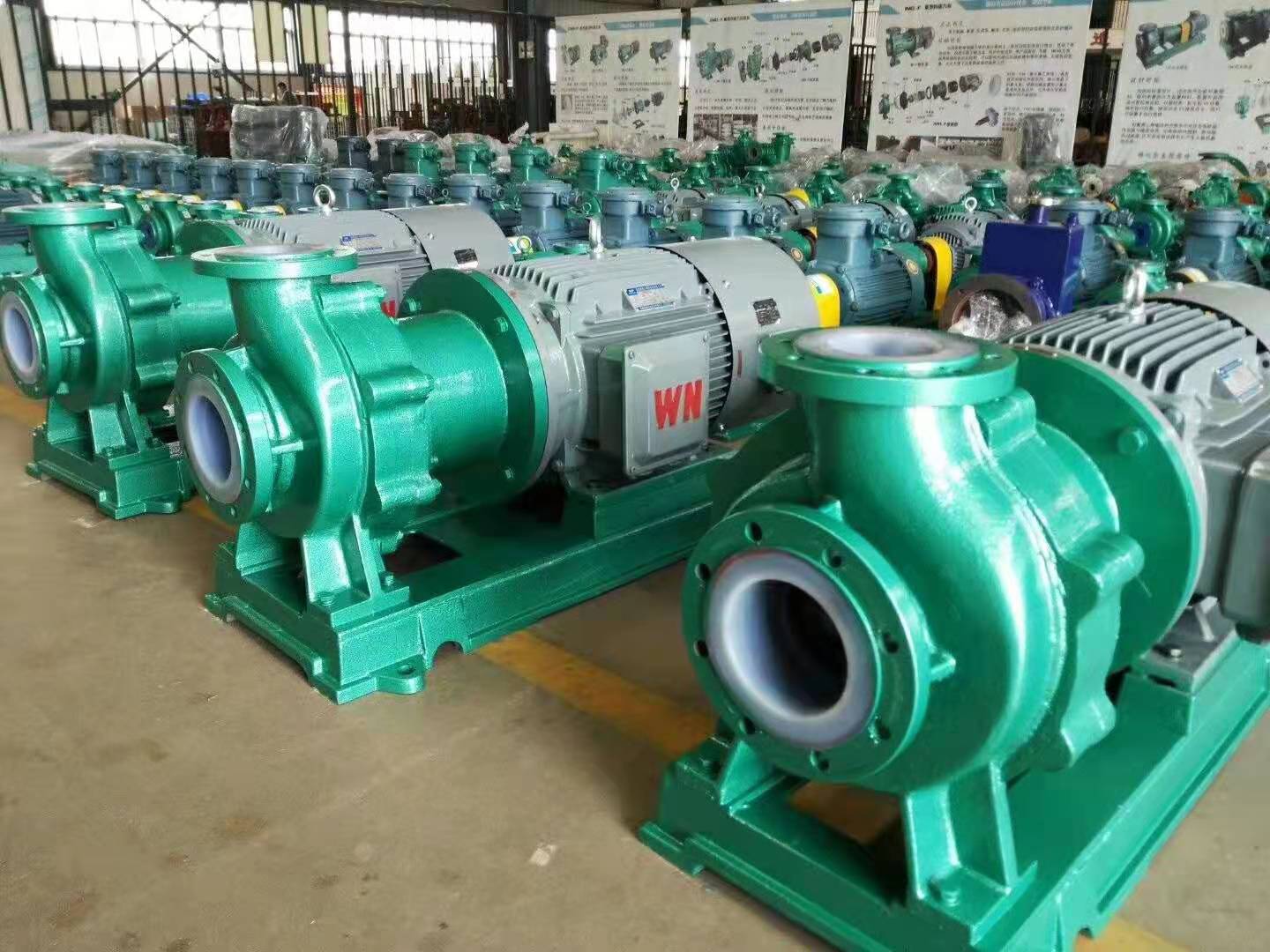 組成部分:襯氟泵殼、葉輪、磁力耦合器、加強(qiáng)套、密封件、底座、電機(jī)。