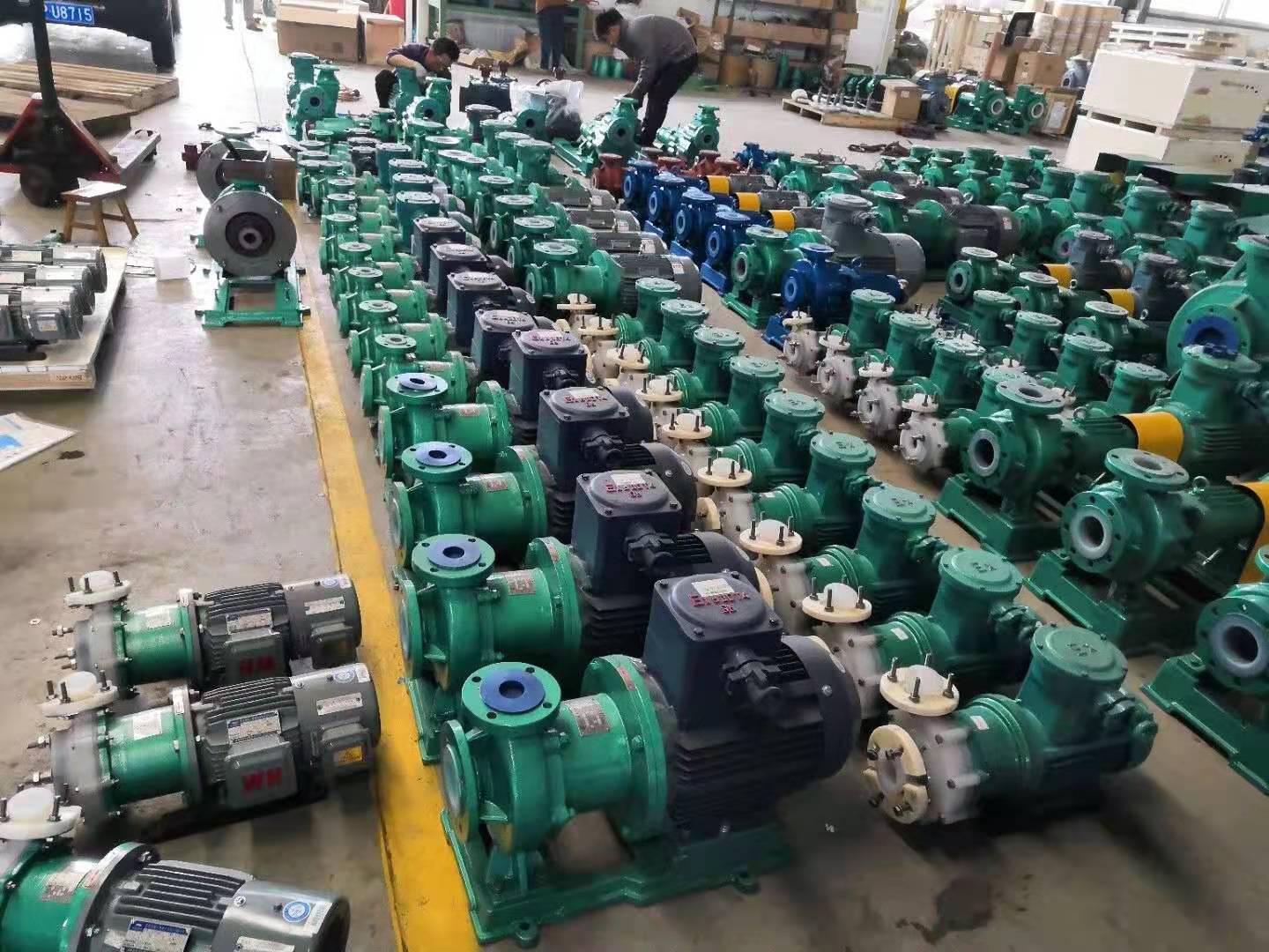 組成部分:全氟泵殼、葉輪、磁力耦合器、加強(qiáng)套、密封件、底座、電機(jī)。